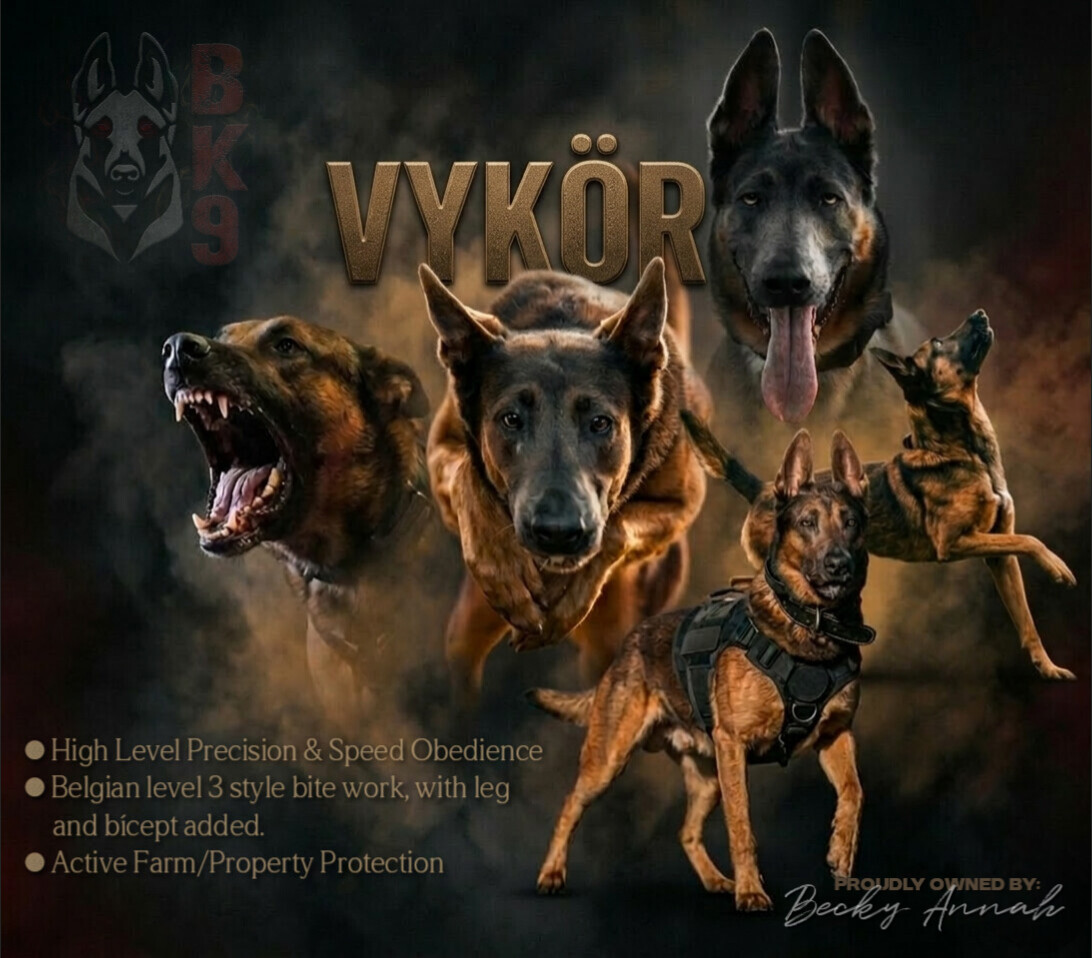 Vykor is the living embodiment of the BK9 Training philosophy: a high-drive, elite athlete with a flawless “off-switch.” Sourced from distinguished police apprehension lines, high level NVBK & KNPV sport lines, Vykor has spent his life proving that a world-class working dog can be both a fierce protector and a stable, reliable companion.